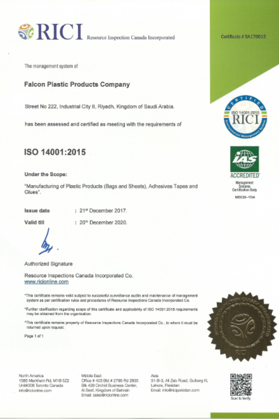شركة فالكون للمنتجات البلاستكية تحقق شهادات «الآيزو» العالمية